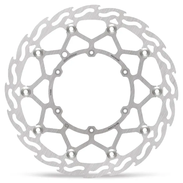 - Für die Verwendung mit Original-Bremssätteln entwickelt, Supermoto Street Bremsscheiben sind 4 mm dick und verwenden eine schwimmend gelagerte 320 mm-Konstruktion